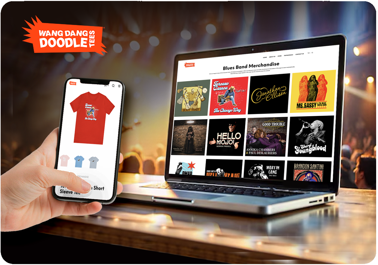 In January of 2020, I created Wang Dang Doodle Tees, an e-commerce website that was connected to a print-on-demand platform. My intention was to design original, music-themed apparel for sale to musicians and music fans.